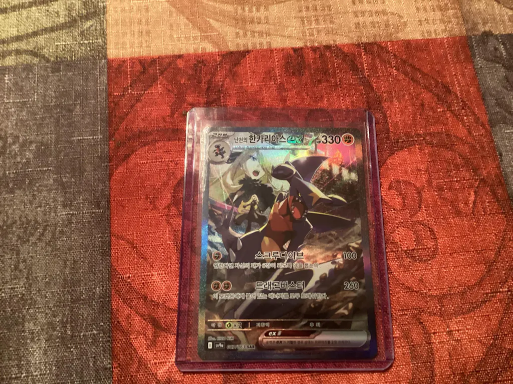 So my dad bought a box of this heat wave thing so like, I’m opening a pack each day really. Then I do 4 packs and place it like a deck like most people do with 5 card packs, and I’m going through and I see this SIR garchomp ex and I’m screaming! I really recommend this set for anyone! I got an SIR and an illustration rare. Thank you for reading!